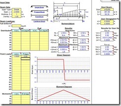 "BEAMANAL" is a spreadsheet program written in MS-Excel for the purpose of analysis of either single-span or continuous-span beams subjected to virtually any type of loading configuration. Four (4) types of single-span beams and two (2) through (5) span, continuous-span beams, considered. Specifically, beam end reactions as well as the maximum moments and deflections are calculated. Plots of both the shear and moment diagrams are produced, as well as a tabulation of the shear, moment, slope, and deflection for the beam or each individual span. Also, for steel single-span beams an AISC 9th Edition (ASD) Code check can be performed for X-axis bending and shear."