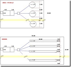 Como resultado final obtienen las dimensiones del tanque séptico en cuestión, detalladas en un croquis, como indica la siguiente figura: